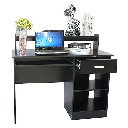 Amazon Com Black Computer Desk Sliding Keyboard Spacious