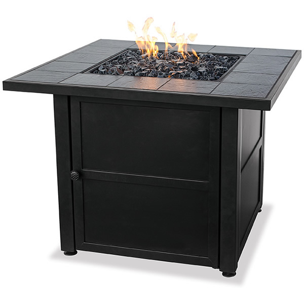 Outdoor Gas Fire Pit Table With Wide Slate Tile Mantel Lp